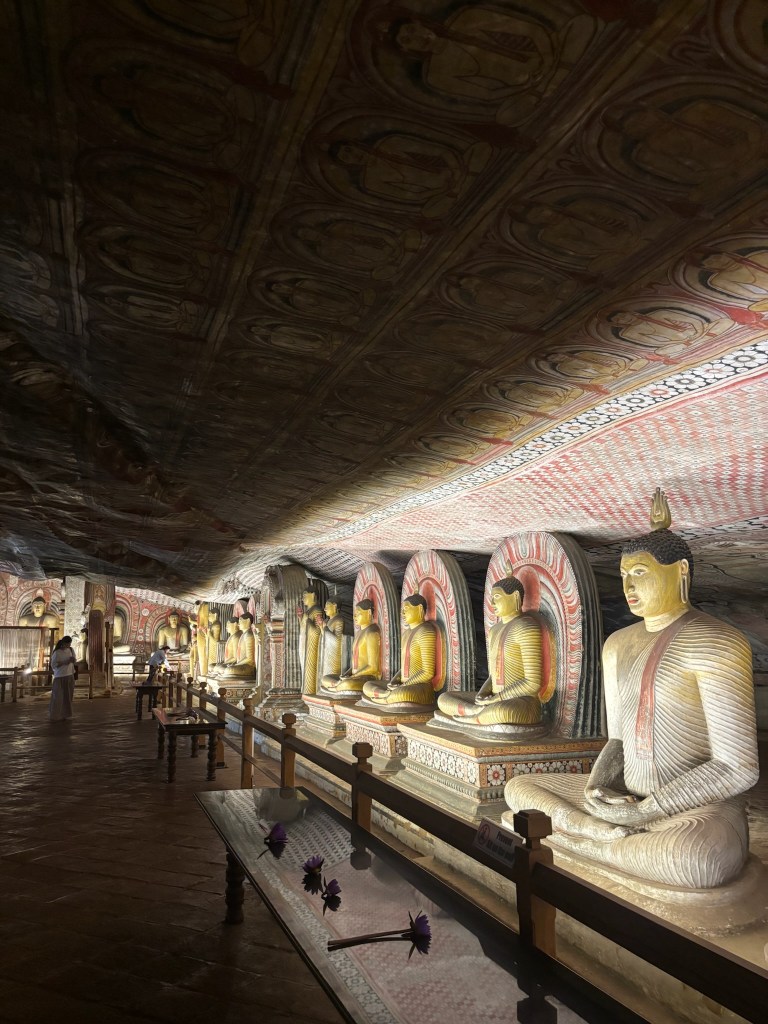 Later on in the afternoon we took a spin with Channa in his tuktuk and headed down toward Dambulla. Dambulla is known for its Unesco listed cave temples. The cave is filled with over 150 Buddhist statues and detailed paintings etched into the caves walls. As it is a sacred place, you must dress appropriately, covering both your shoulders and knees. You are also required to remove your shoes at the top before walking around the caves. There is a small hike of about 300 steps to reach the temple.
