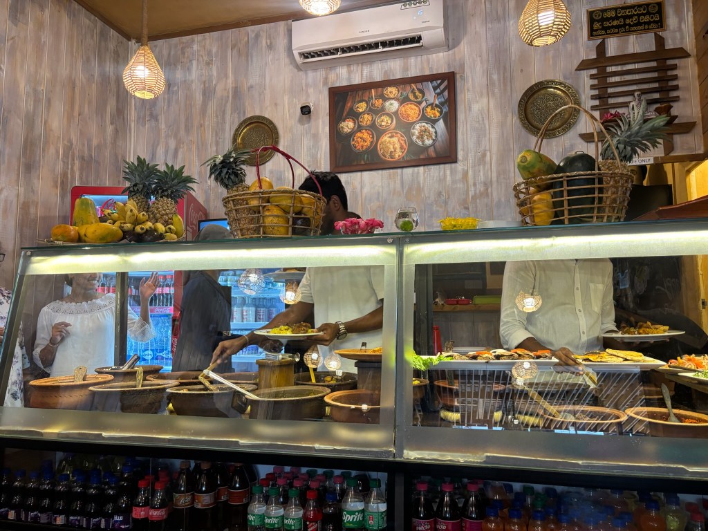 Once we were finished exploring, we headed to eat at a restaurant called Sorisso, which supplied a fusion of Chinese, Sri Lankan, Indian, and Italian food. It was a self-serve setting where you could pick as many different types of food to pile up on your plate for a relatively low price. The restaurant was packed with both locals and tourists. When one spot on the buffet would finish, the chefs would cook up a brand new meal to replace it. Whilst we were there, there were options of dhaal, fish curries, vegetable curries, rice, ladyfingers, beef dishes, and so much more! They also provided a complimentary dessert to finish the meal! I believe my meal came out to 1200 LKR(€3.27) including a drink!