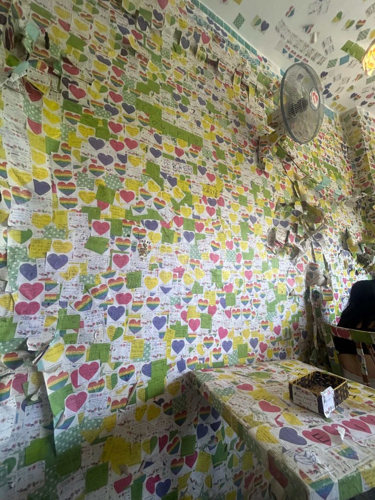 I did pay the famous Note Coffee shop a visit. Tucked in the bustling streets of Hanoi lays this famous 4 storey cafe. The walls are covered from floor to ceiling in aspirations, quotes and dreams from previous travellers. I think it is worth the visit for the concept. It is such a wholesome idea and when you are a solo traveller it does spark a sort of sense of comfort. The iced coconut coffee was banging.
