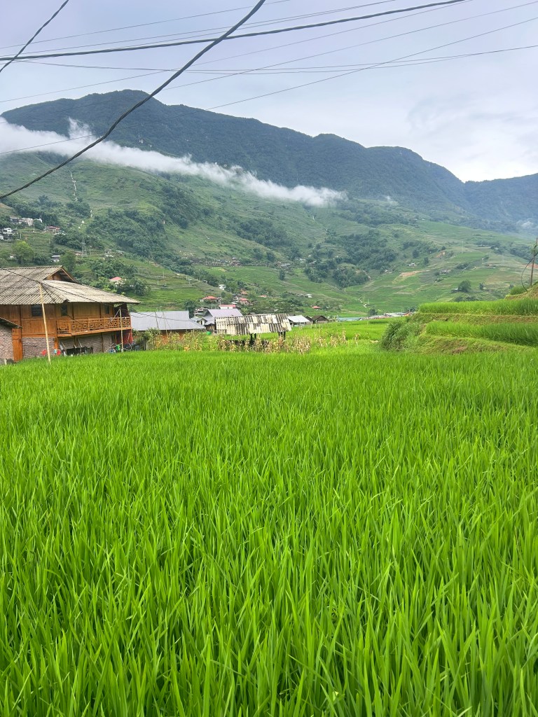 Bong Hostel, offered a direct tranfer to Sapa from their hostel in Ha Giang. For 50,000 VND we were able to get a sleeper bus. We arrived late into our homestay and went straight to bed. The next day we booked a day long trek through our homestay. I think we paid around 250,000 VND. It was a cold and miserable day, which added to the fun. We got picked up in our van around 11.00am and headed to the start of our tour. Our tour guide was a lovely local lady. She was extremely informative and was open to any questions we had. A local family joined and helped us trek through the cascades of water flooding the paths. Our guide showed us the rice crops, as we passed through the bright green rice fields and past gushing waterfalls. We visited a little textiles shop and ate dinner with one of the families in their home, before taking a shot of happy water!